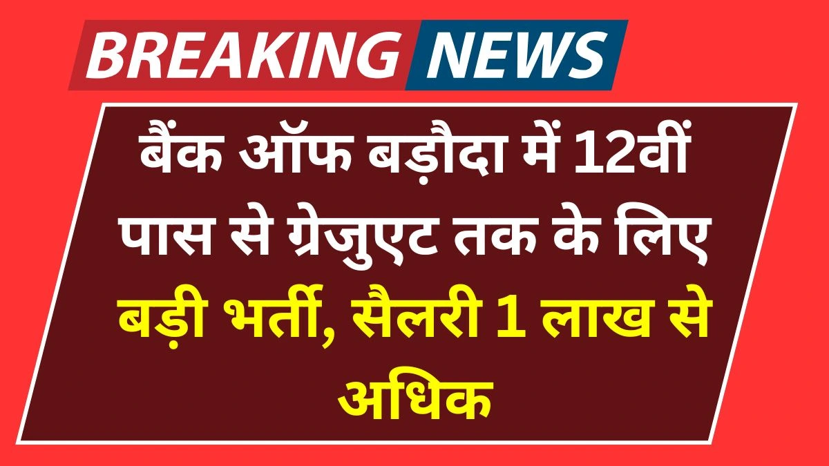 BOB Recruitment 2025: बैंक ऑफ बड़ौदा में 12वीं पास से ग्रेजुएट तक के लिए बड़ी भर्ती, सैलरी 1 लाख से अधिक